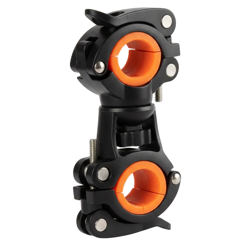 This clamp also works well for use on many other items where you want to connect one item to another for easy but secure and safe use - such as easily being able to attach a flash light or umbrella onto a pushbike, scooter, wheelchair, hold a fishing pole, etc.