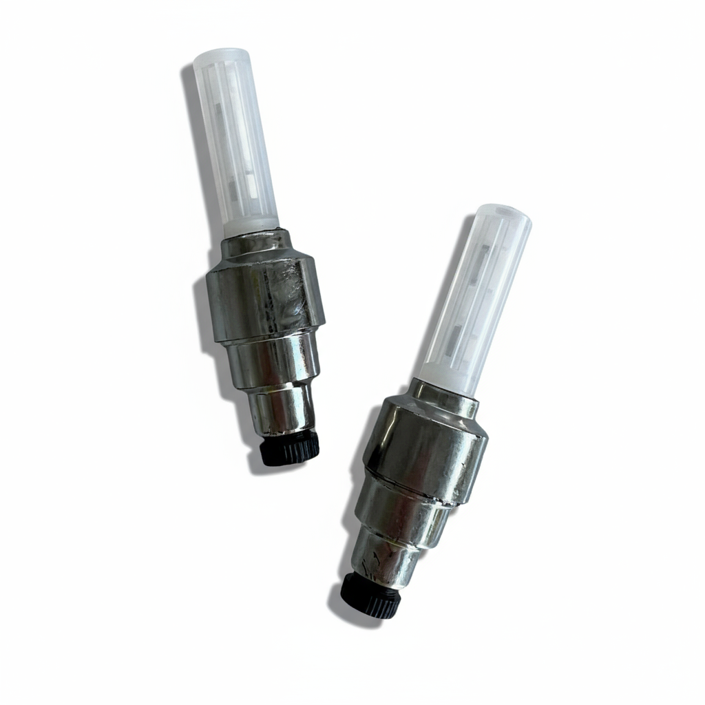 Looking to add some flair to your wheelchair, bike, mobility scooter, or vehicle? These motion-activated light-up valve caps are both stylish and functional. They not only look great but also create a captivating spinning light effect as you move, enhancing safety during nighttime rides and in adverse weather conditions. As your wheels begin to turn, they instantly illuminate, forming a solid circle of light that seems to float above your wheels. When you come to a stop, they automatically turn off to conserve battery power. Valve caps enhance the visual appeal of your wheels, sure to attract attention + compliments.