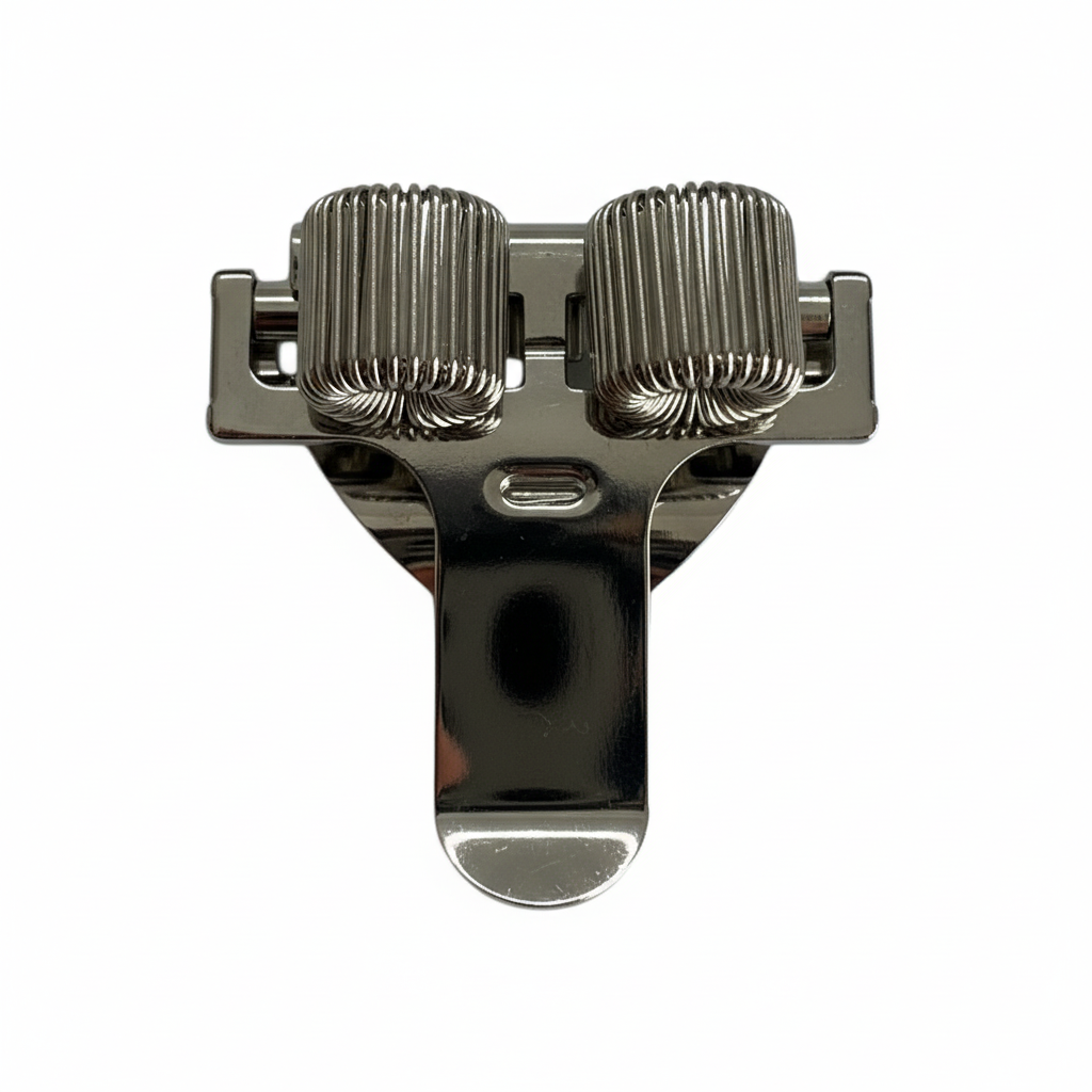 Image Description: A set of metal pen clip holders in different styles, including single and triple pen versions. Some are shown clipped to notebooks, folders, and pockets, holding pens securely in place.