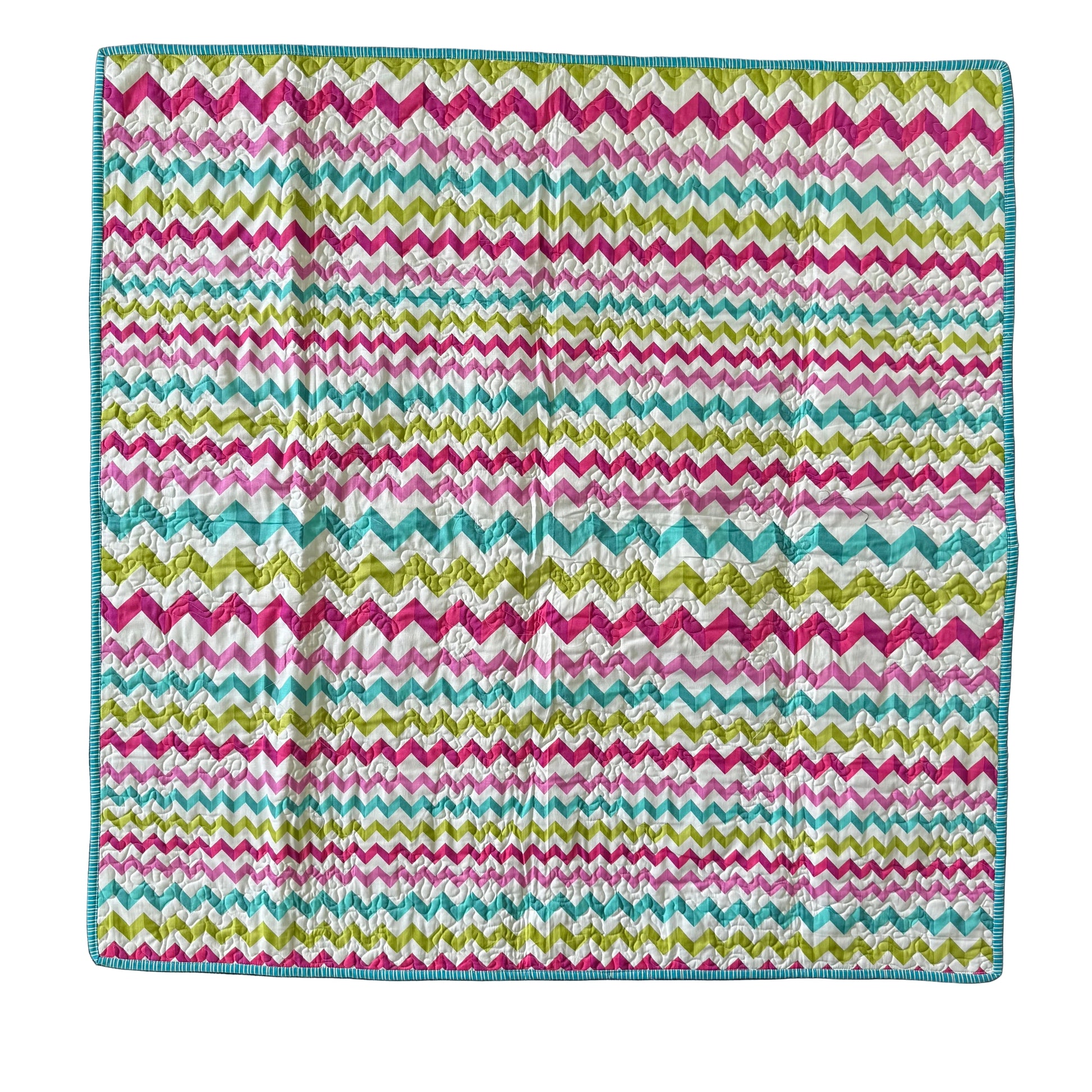 Turn it over and you’ll find a bold zigzag backing in vibrant pinks, greens, and blues, adding an extra layer of fun and making this quilt just as lovely flipped over as it is on display. The detailed quilting throughout adds beautiful texture and makes the quilt feel comforting, cosy, and made to last.