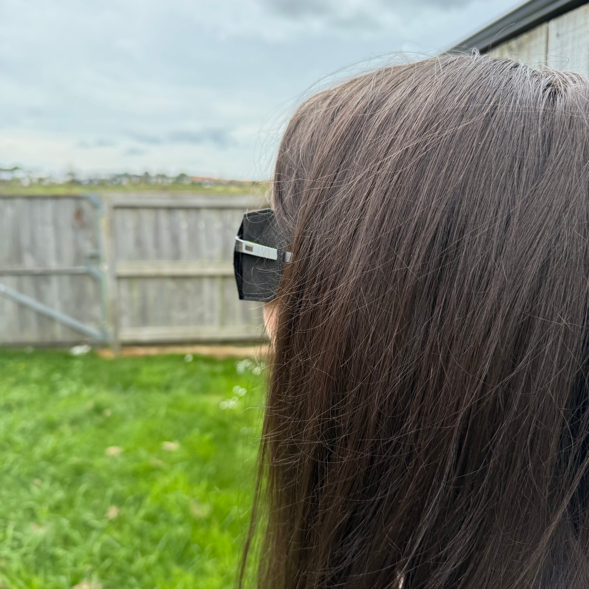 ➡️ Move the patch along the arm until it sits directly over the lens you want to cover