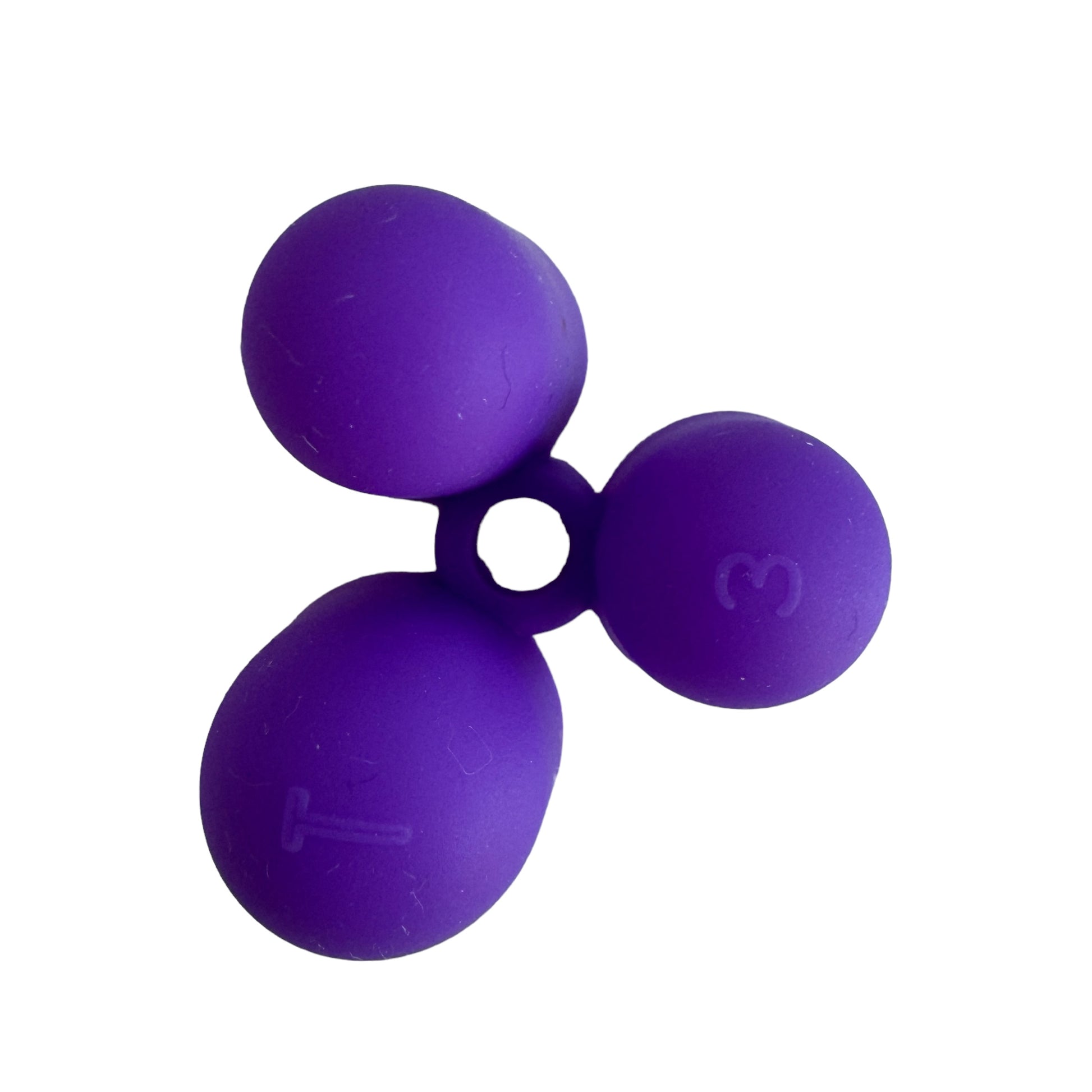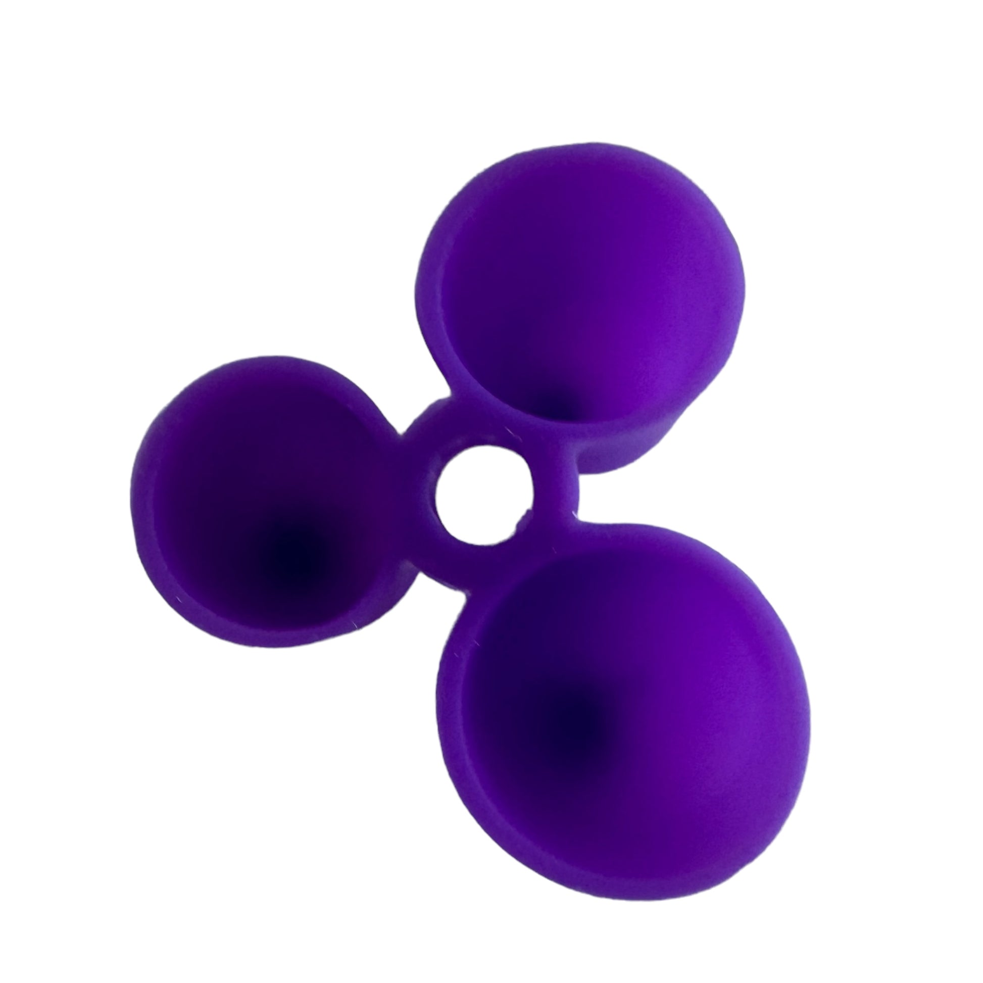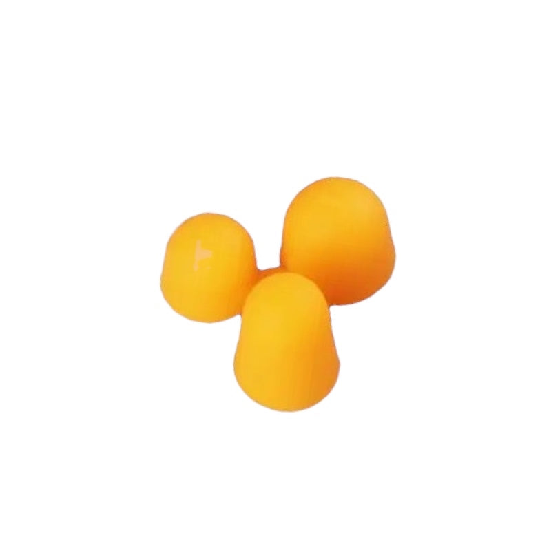 Image Description: A triangular-prism-shaped pencil grip made from soft silicone with 3 finger holes to support grip. It is available in a variety of bright colours such as green, orange, red, pink, purple, blue, or yellow.